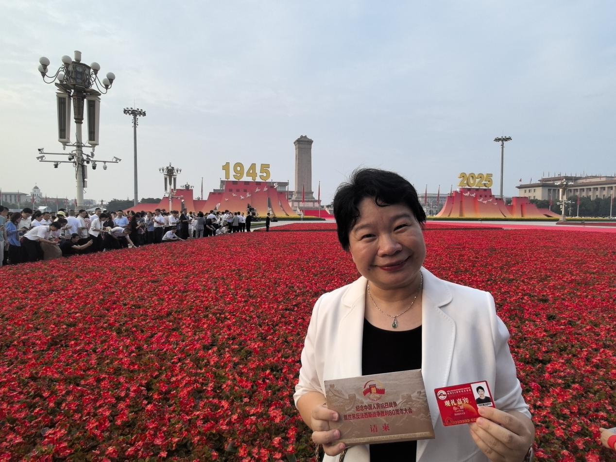 9月3日,纪念中国人民抗日战争暨世界反法西斯战争胜利80周年阅兵在北京天安门广场隆重举行。成人短视频 护理学基础学系主任岳鹏教授作为首都教育界代表,受邀与来自各行各业的先进人物一道现场观礼,亲身见证国之重器铿锵列阵、雄鹰编队呼啸苍穹的历史时刻。