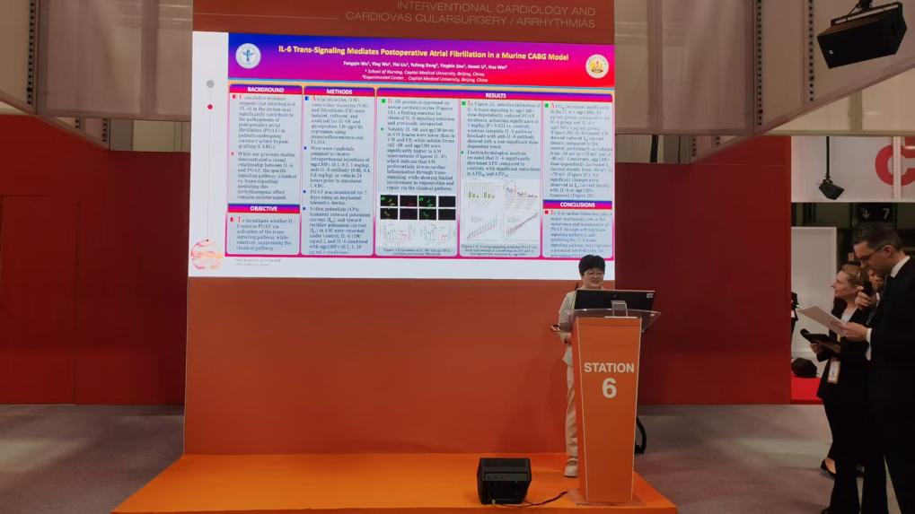 在这一国际顶级学术舞台上,成人短视频 吴瑛教授带领的护理AI与基础研究交叉团队凭借出色的科研实力,成功获得2项口头报告(Oral Presentation)和1项电子壁报口头交流(Moderated ePoster)的展示机会,这三项研究成果完美诠释了团队“从临床到基础,从基础到应用”的创新理念:从自主研发数字化智能护理工具,到大规模队列研究分析,再到精准分子机制探索,构建了心血管疾病护理干预与术后并发症预防的研究链条,充分展现了护理AI与基础研究交叉融合的巨大潜力。团队的三位研究生在学校国际交流与合作处的支持下,在这个世界级顶会上进行口头交流,得到了主持人和与会代表的高度赞扬,展示了首医成人短视频 研究生开展高质量护理研究的风采。
