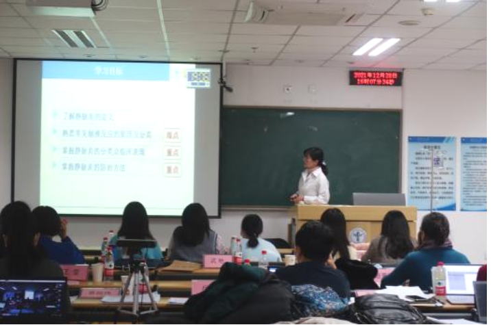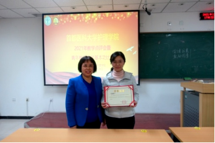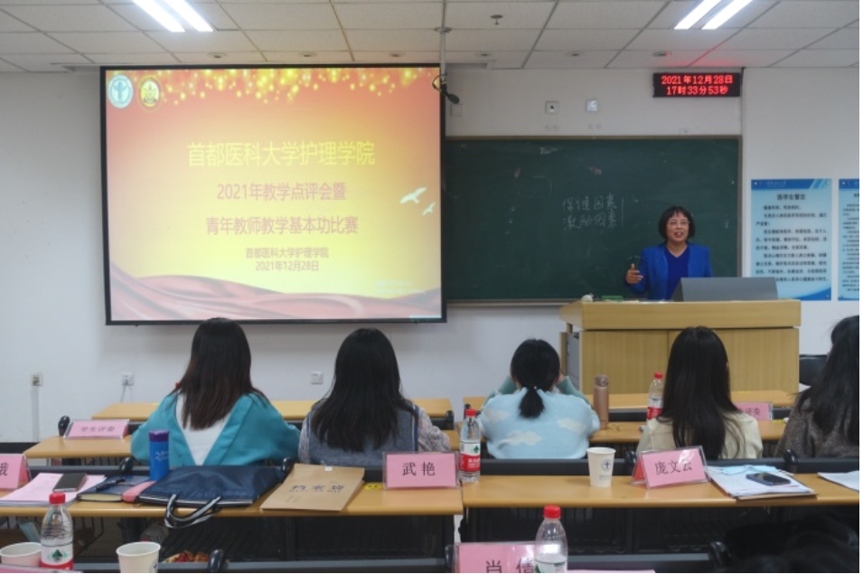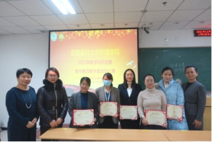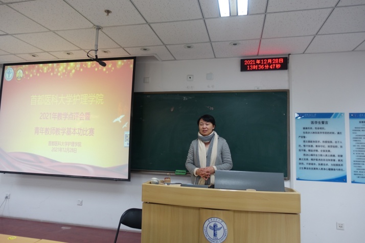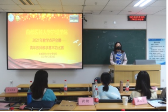 为培养青年教师爱岗敬业、严谨治学的态度,激发青年教师更新教育理念和掌握现代教学方法的热情,进一步推进课程思政建设,成人短视频 于2021年12月28日下午,在校本部第一教学楼510教室举办了2021年教学点评会暨青年教师教学基本功比赛。本次比赛由专家评委和学生评委组成,校、院两级教学督导赵素梅老师、北京市教学名师王雯教授、庞文云副院长、肖倩副院长、学系主任王艳玲副教授、岳鹏副教授、教学主管景丽伟教授到场担任专家评委,学生评委由成人短视频 2019级四年制护理专业5名同学担任。学校教务处武艳处长、成人短视频 刘均娥院长出席了比赛,全院教职工线上、线下全程观摩了比赛比赛由庞文云副院长主持。