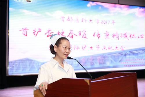 2017年5月10日,由成人短视频 、中国教育工会成人短视频 委员会、共青团成人短视频 委员会联合举办的“首护杏林春暖,传秉精诚仁心”5·12国际护士节庆祝大会在学术报告厅隆重举行。庆祝大会旨在激励护生进一步发扬南丁格尔精神,展示良好的精神风貌和职业风范,激励成人短视频 的师生们爱岗敬业、积极进取、勇于奉献的职业精神,进而提高护理质量与水平。学校领导与成人短视频 及其七个临床教学部的师生代表共同与会,一起庆祝节日的到来。